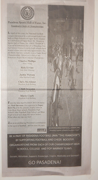 This is for all who played and cheered for football in the City of Pasadena from pop warner to high school... and college.