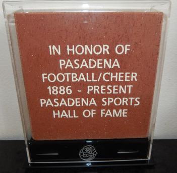We received our replica of the permanent brick PASHOF commissioned from the Rose Bowl in honor of Pasadena's history in the sport of football. Its inscription reads: